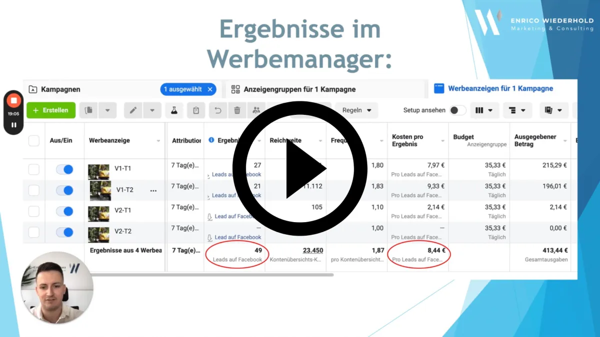 Die komplette Kampagne (Video, Texte, Werbeanzeigen) die für dieses Ergebnis verantwortlich war und was du tun musst um solche Resultate zu erzielen